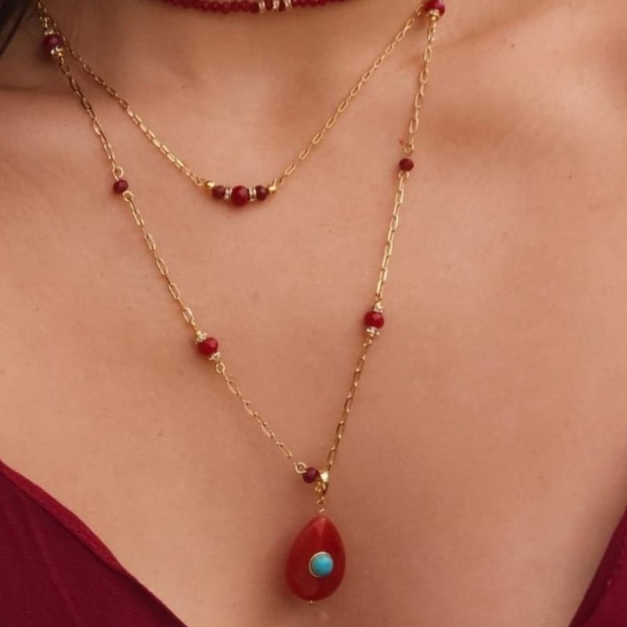 COLAR JADE RUBI NATURAL CRAVEJADO