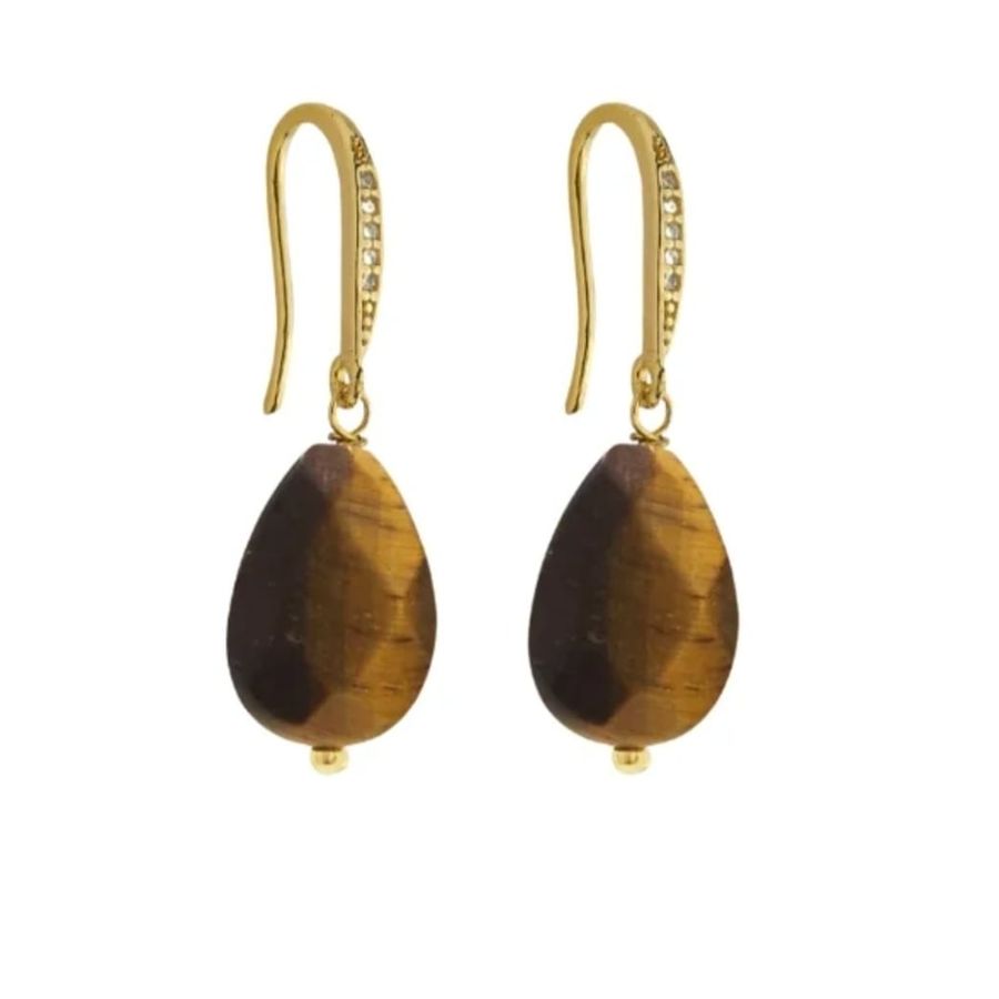 BRINCO OLHO DE TIGRE PEDRA NATURAL ARGOLA CRAVEJADA