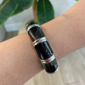 BRACELETE EM RÓDIO BRANCO ESMALTADO EM PRETO, TEXTURA BAMBOO.