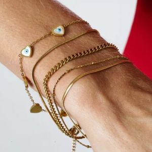 PULSEIRA AÇO INOX DOURADO CORAÇÃO OLHO GREGO