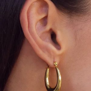 Brinco argola oval lisa média em aço inox dourado. Uma peça clássica e elegante que combina com todos os estilos, do look casual ao mais refinado. Ideal para todos os momentos: não oxida, é à prova d’água e encanta pela durabilidade e brilho atemporal.